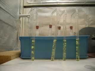 標準液は呈色しています。9. 分光光度計で吸光度を測定し、標準の吸収液との比較を行ないます。